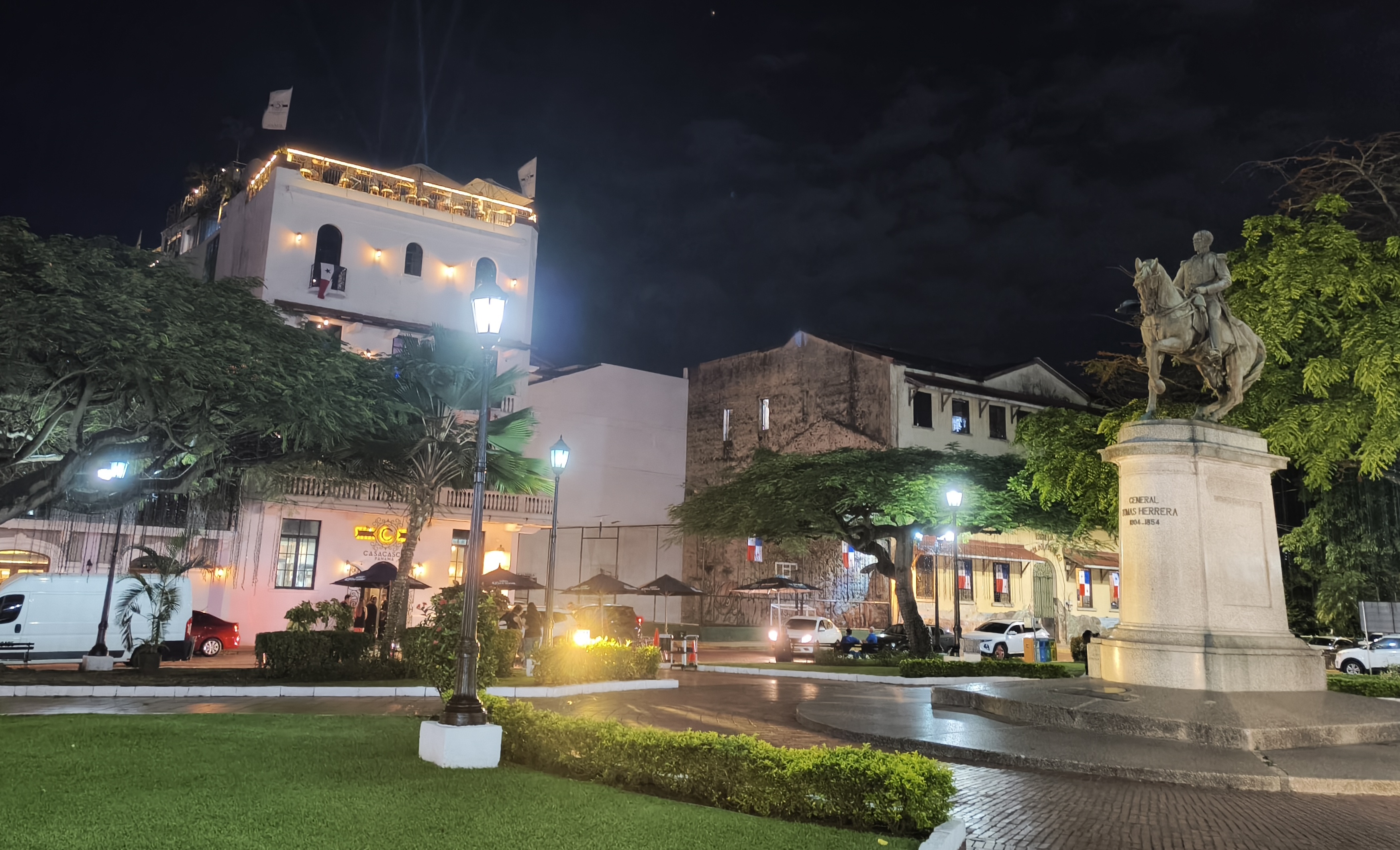 Za počitek od pakiranja smo naročili 2 Uberja in se odpravili v staro mesto oz. Casco Viejo. Nočno temo so krasile prijetne rumene luči, ki so nas spremljale že od naše prve postaje, in sicer parka Plaza Herrera. Tam smo si lahko ogledali spomenike in stavbe ter ujeli eno izmed še odprtih trgovin za suvenirje.